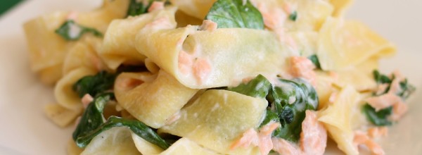Makaron z łososiem wędzonym i szpinakiem
