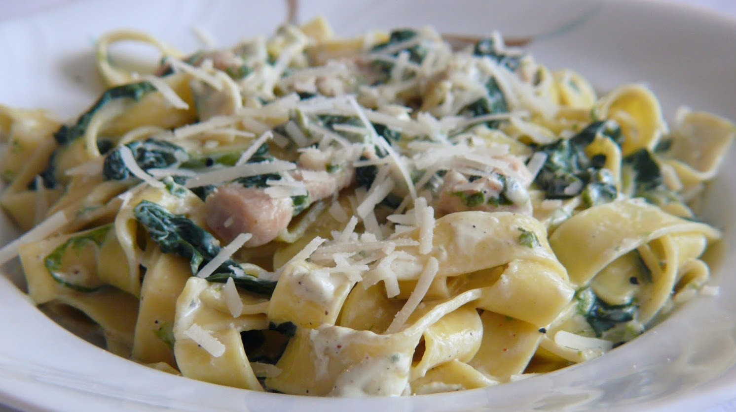 Makaron ze szpinakiem i kurczakiem